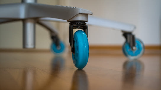 I swapped out my boring old office chair double-wheeled castors for rollerblade-style wheels. I didn’t quite know what I expected, but I’m happier with my chair. The new wheels also as the potential for a minuscule improve my health; so what’s not to like?